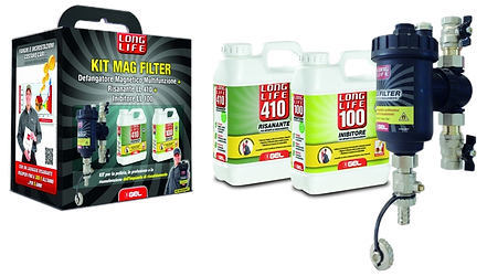 Kit Profesional para el tratamiento físico y químico de las aguas en circuitos cerrados de calefacción o agua fría. Este kit suministra un Filtro y Dosificador del tratamiento para limpieza como para cargar el de mantenimiento.